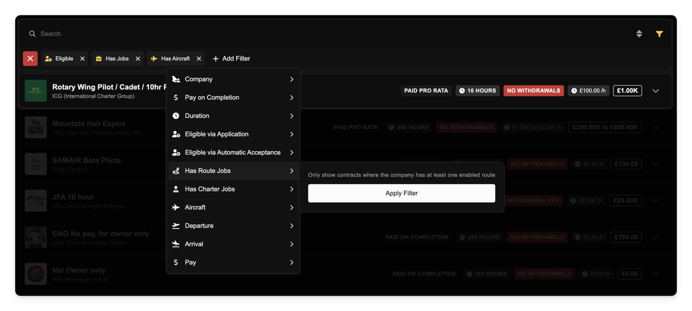 You can now create a shared economy with your partners using the new Revenue Sharing system. This optional feature lets you automatically pool income from member flights and distribute profits on a monthly basis.