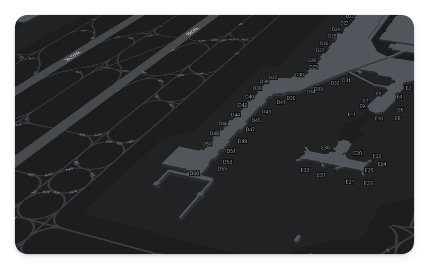 Maps have been upgraded to include specific gate numbers, visible when you zoom in on the terminal area. This detail appears automatically at higher zoom levels, keeping the view clean when you are looking at the broader airport layout.